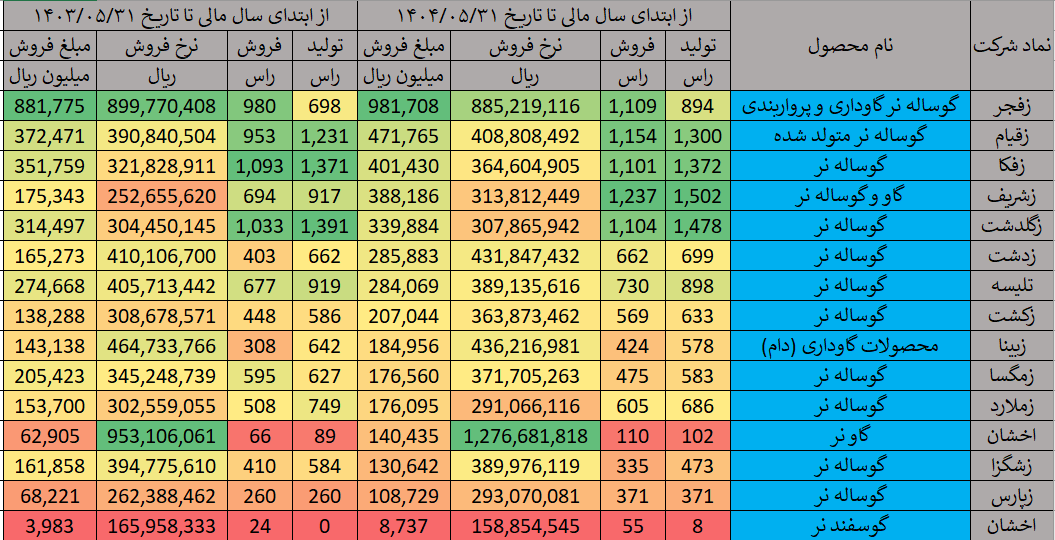 این ارقام نشان میدهد که در مدت ۵ ماه نخست امسال، بیشتر شرکتهای گروه دامپروری بورسی توانستهاند تعداد تولید و فروش و همچنین درآمد خود را در محصول گاو و گوساله نسبت به مدت مشابه سال قبل افزایش دهند، هرچند شدت و دامنه این رشد در میان شرکتها متفاوت بوده است.