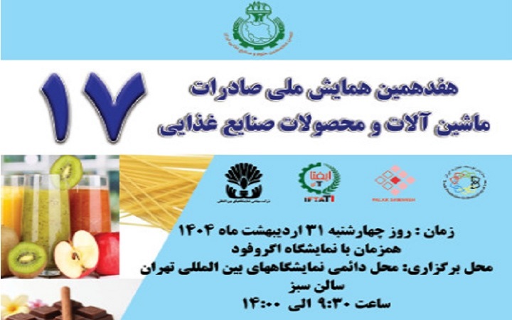 به گزارش پایگاه خبری فناوری غذا و صنایع تبدیلی کشاورزی ایران ( ایفتاتی آی ) ، هفدهمین همایش ملی صادرات ماشین آلات و محصولات صنایع غذایی به همت انجمن علوم و صنایع غذایی ایران و با همکاری سازمان توسعه تجارت ایران و شرکت پالار سامانه همزمان با نمایشگاه ایران اگروفود چهارشنبه مورخ ۳۱ اردیبهشت ماه ۱۴۰۴ با هدف بحث و بررسی پیرامون چالش های حوزه صادرات و بهره گیری از تجارب پیشگامان و صنعتگران حوزه صنعت غذا و ماشین آلات و صنایع وابسته در جهت حل مسائل مبتلا صنعت برگزار می شود .